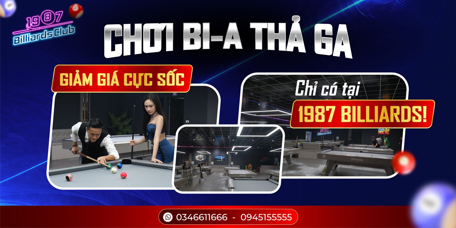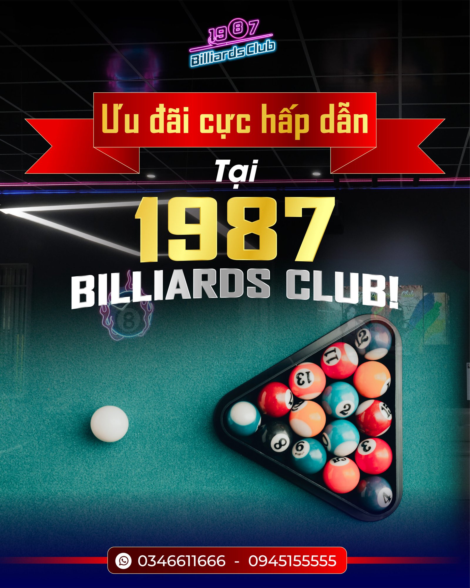 1987 Billiards Club là câu lạc bộ bi-a, brand tập trung vào chất lượng cơ sở vật chất và không gian giải trí độc đáo, hiện đại, nhằm đáp ứng nhu cầu thư giãn và kết nối của nhóm khách hàng trẻ tuổi.