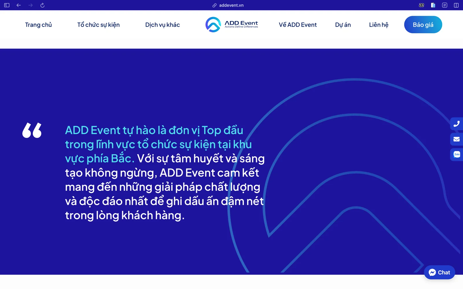 Chúng tôi đã tái cấu trúc trang web cho ADDevent, tuân thủ mục tiêu thiết lập một hình ảnh thương hiệu độc đáo và sáng tạo cho công ty tổ chức sự kiện này, nhằm phân biệt nó với các đơn vị khác trên thị trường.