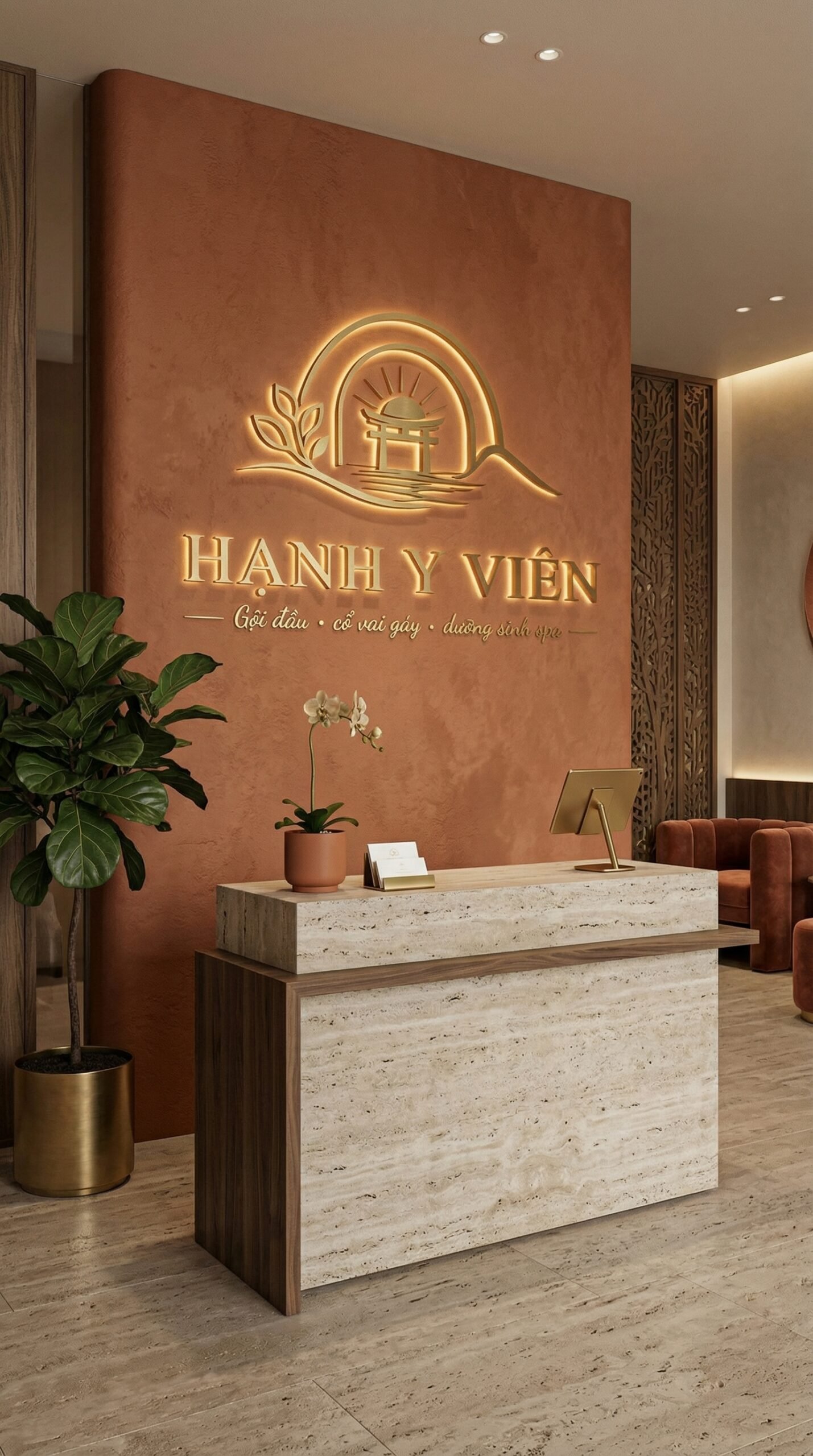 Cổng Trời (The Gateway): Hình ảnh vòm cổng cách điệu không chỉ là biểu tượng kiến trúc mà còn là “ranh giới” bước vào sự bình yên. Khi khách hàng bước qua “cổng” của Hạnh Y Viên, mọi mệt mỏi sẽ dừng lại phía sau.