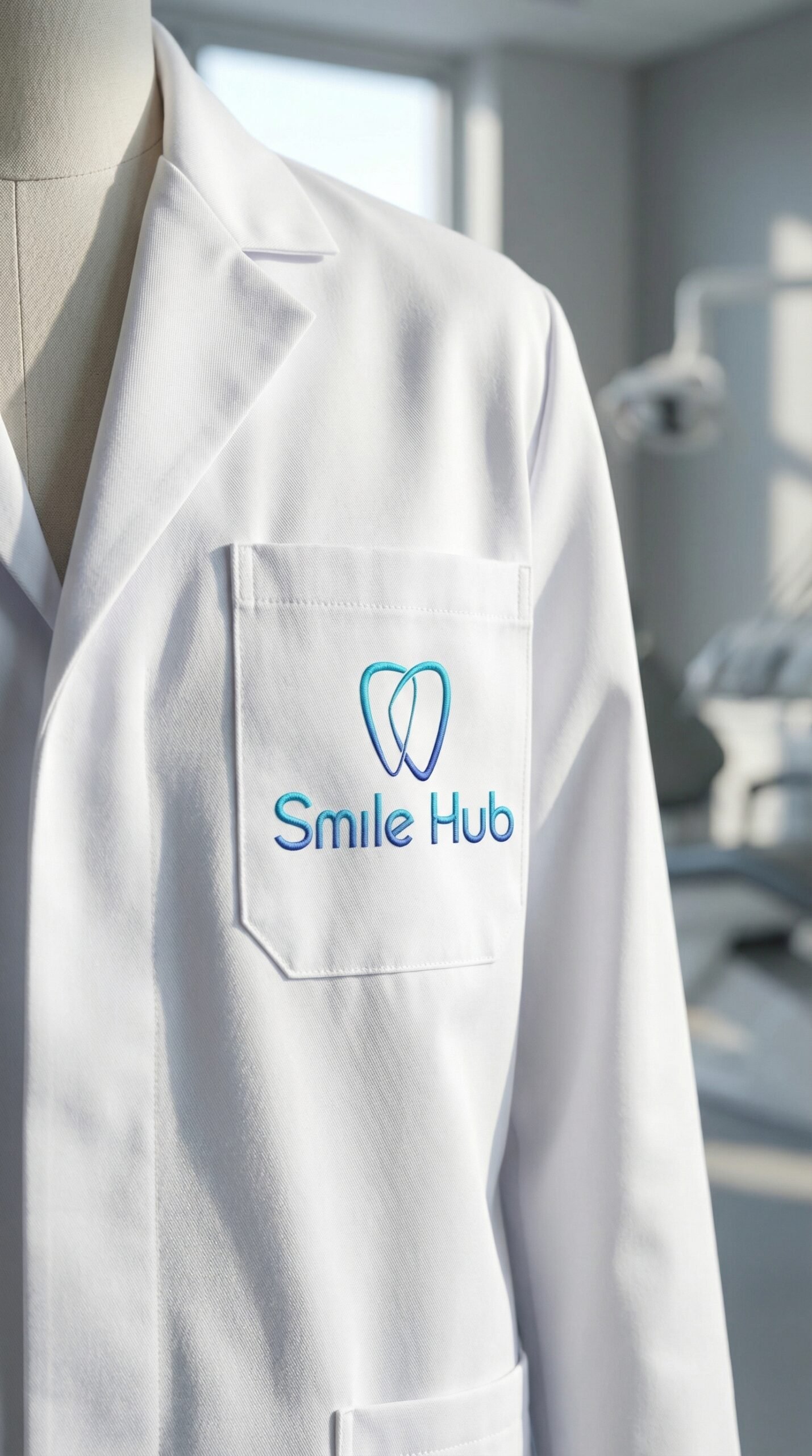 Biểu tượng răng cách điệu (Iconography): Hình ảnh chiếc răng được tạo thành từ hai đường nét thanh mảnh, đan lồng vào nhau một cách tinh tế. Sự kết nối không đứt đoạn này tượng trưng cho quy trình chăm sóc khép kín, bền vững và sự gắn kết giữa bác sĩ với bệnh nhân.